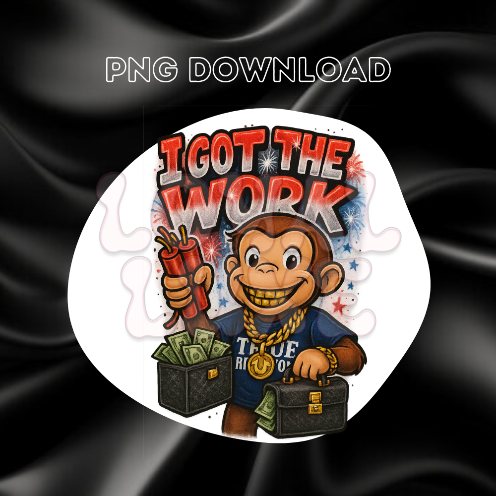 Celebrate Independence Day with a playful twist featuring Curious George! This graphic tee showcases George wearing a True Religion shirt, surrounded by vibrant fireworks and large bags filled with cash. Perfect for adding fun and flair to your holiday wardrobe, this PNG combines iconic charm with festive spirit.