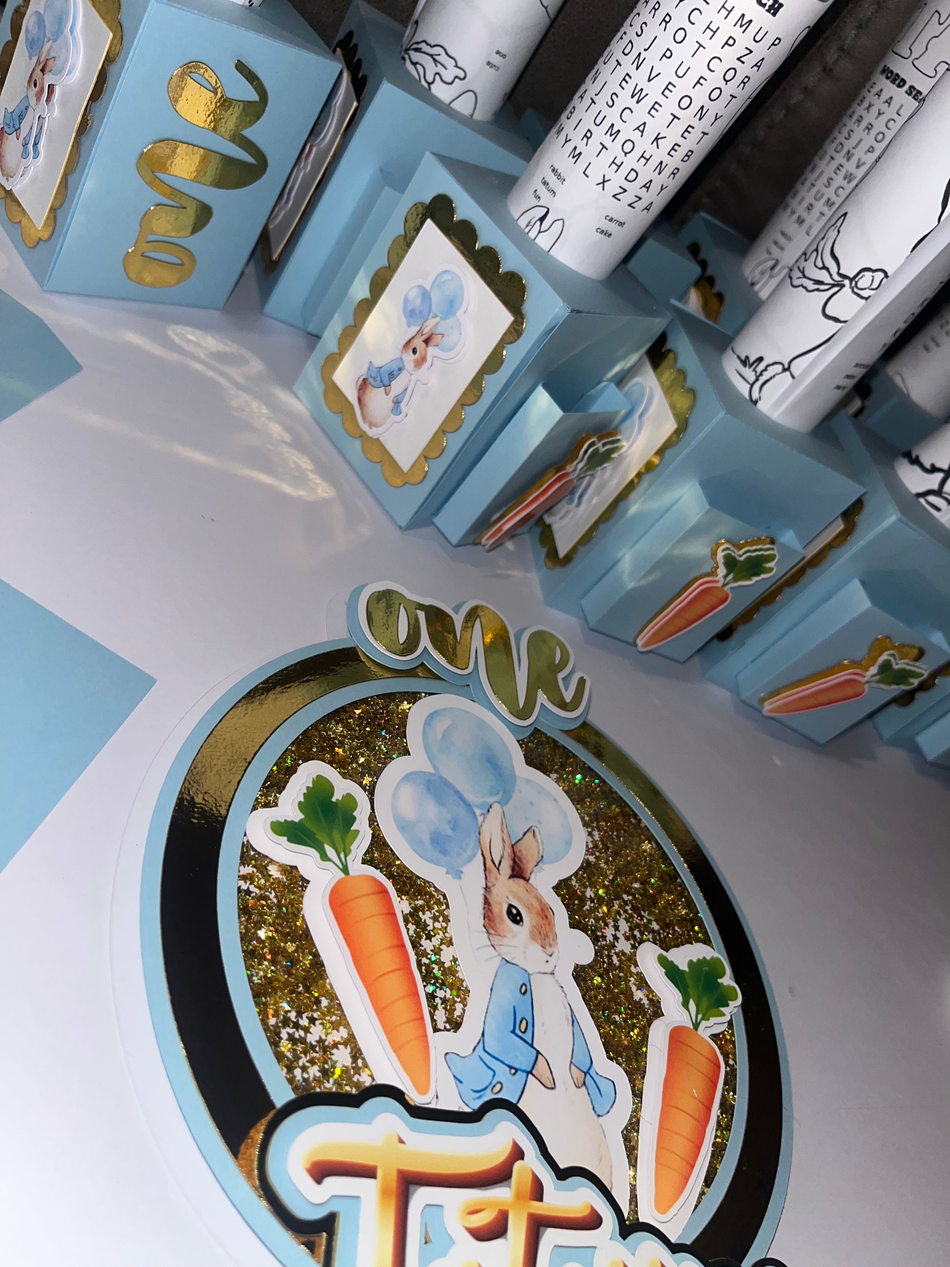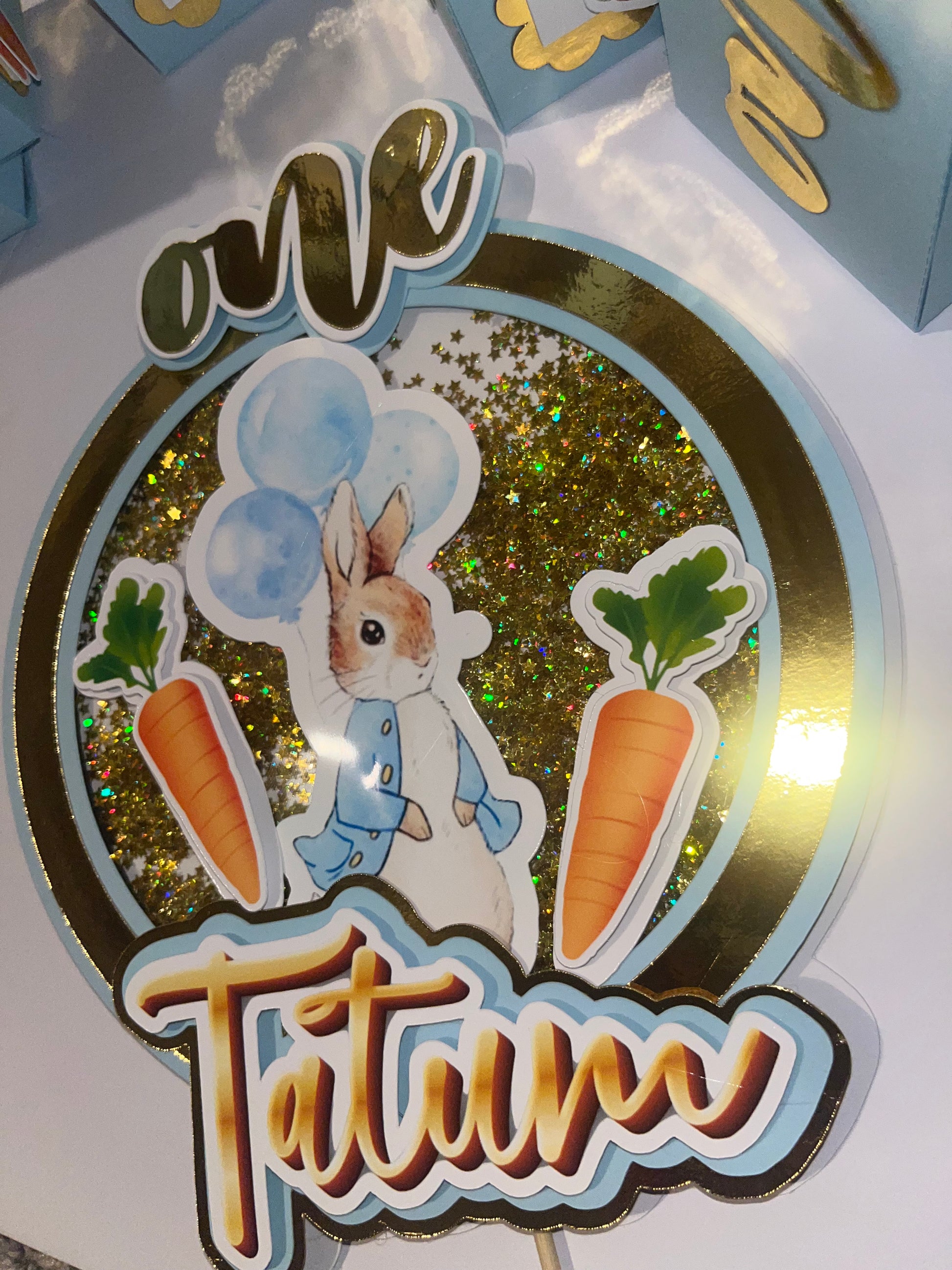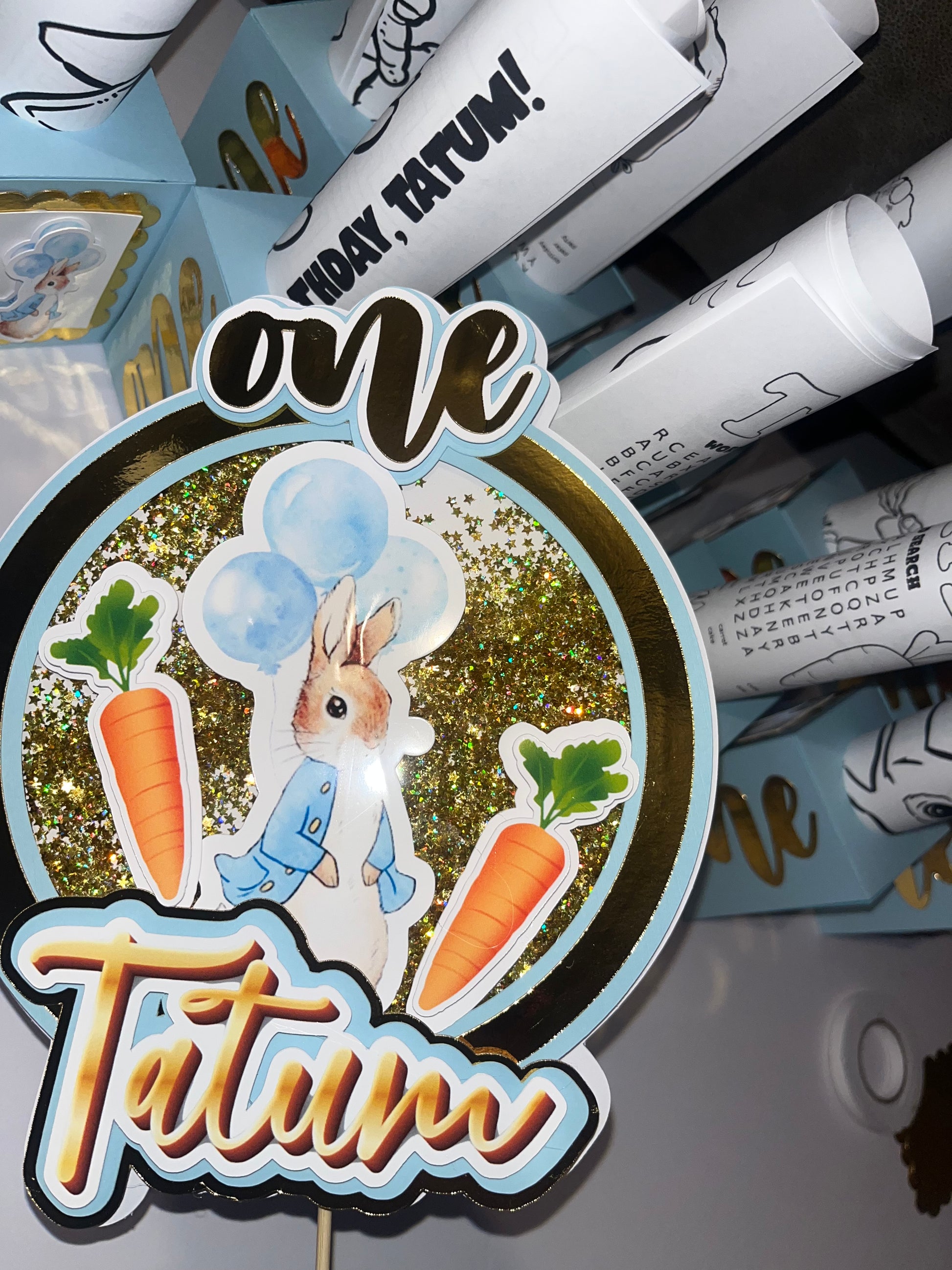Get ready for a fun and customizable cake with our Peter Rabbit cake topper! This shaker topper features the beloved character and comes with carrots for added fun. Slightly larger than 6", it's the perfect size for your cake.